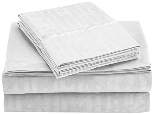Clara Clark Premier 1800 Collection 100-Percent Microfiber Bamboo Embossed Bed Sheet Set, King Size, White