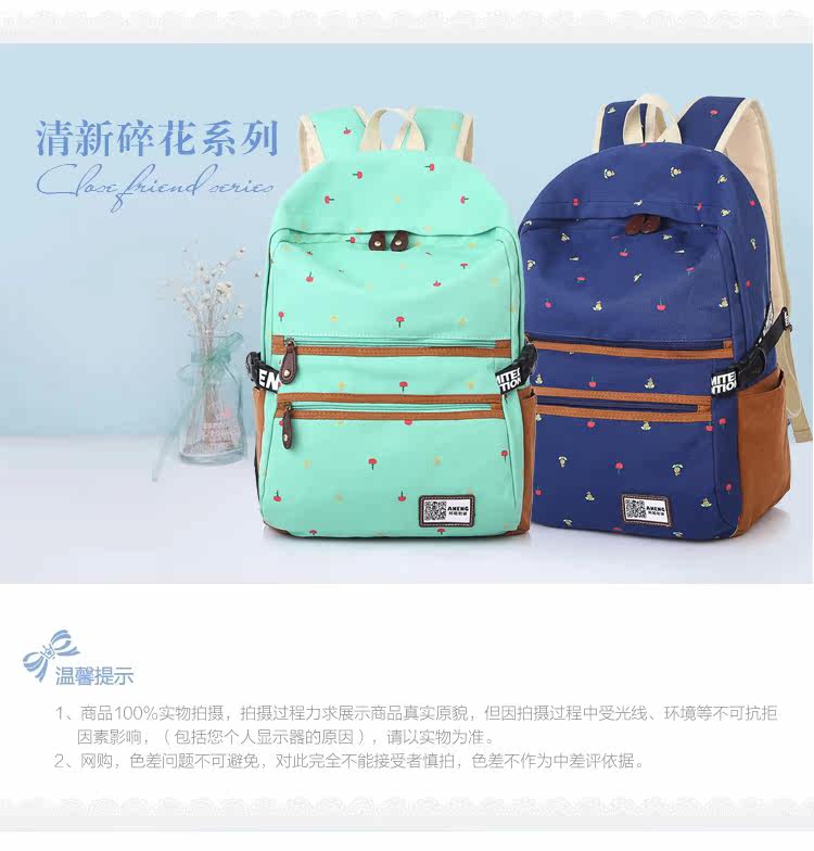 阿能中学生书包女韩版双肩包休闲森女系帆布背包学院风女包潮新款