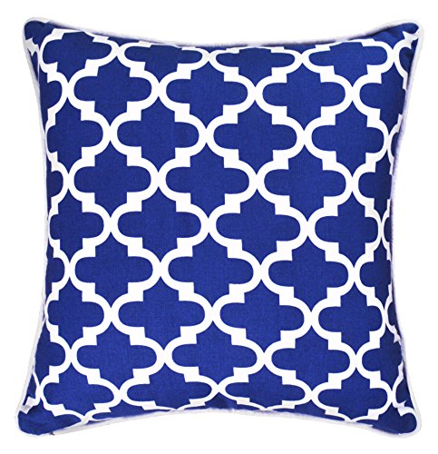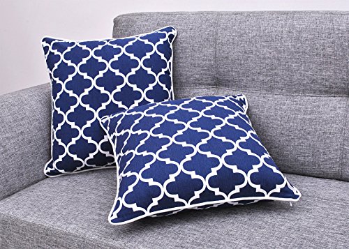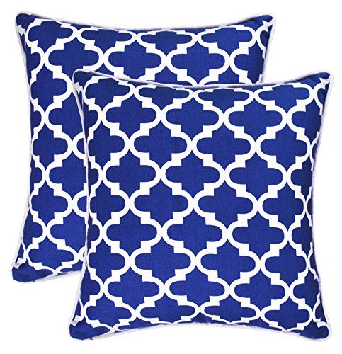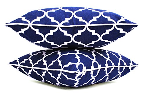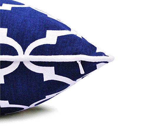 Accent Throw Pillow Covers in Cotton Canvas Trellis/Quatrefoil/Lattice 18 x 18 Inches Blue & white with Hidden Zipper Closer (Pack of 2) By Bath Bed Decor