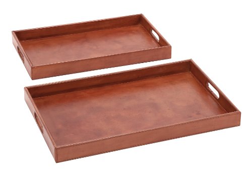 Plutus Brands Simply Charming Set of 2 Wood Real Leather Tray