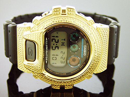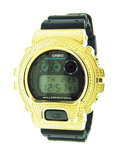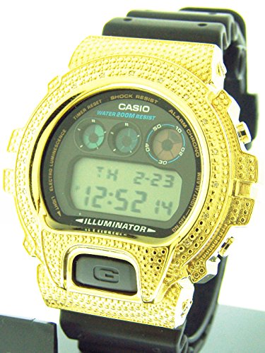 -. Title : Men Casio G Shock 15 Diamonds Black Face Watch 6900 Gold Tone Case