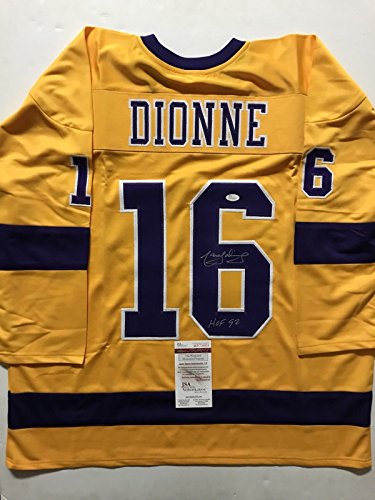 Autographed/Signed Marcel Dionne "HOF 92" Los Angeles LA Kings Yellow Hockey Jersey JSA COA