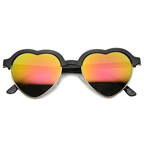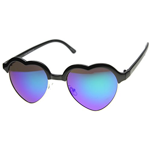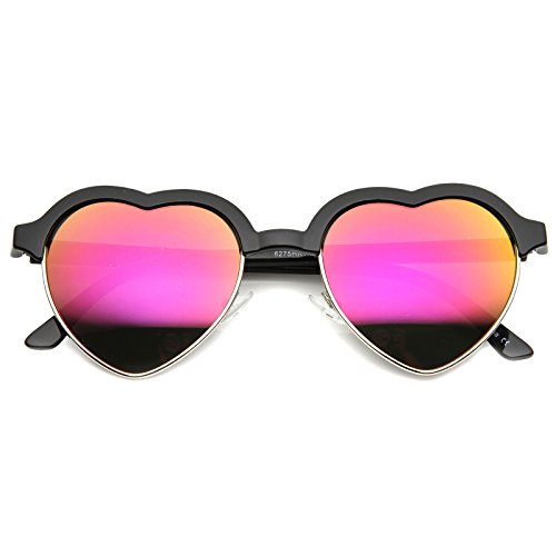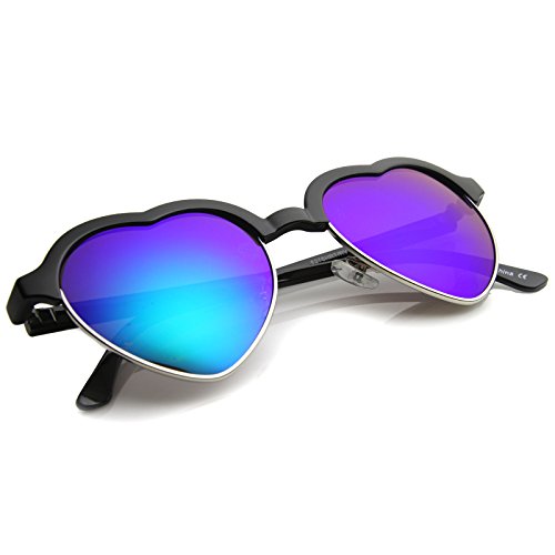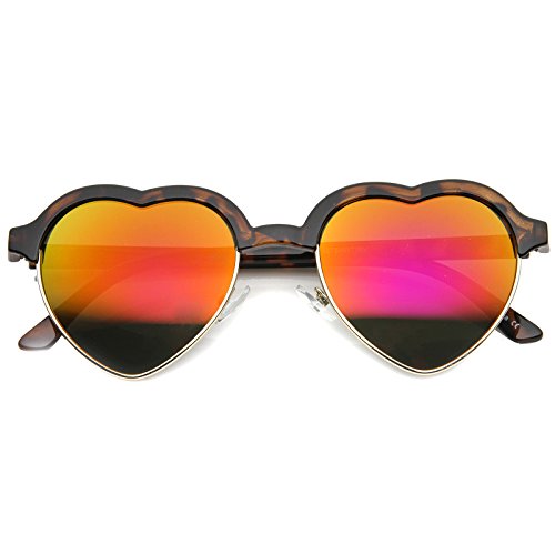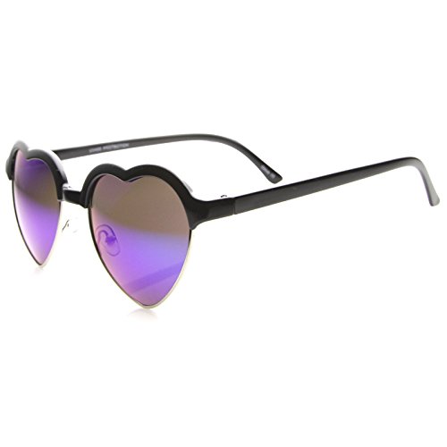 -. Feature : 100% Protection Against Harmful UVA/UVB Rays / English Style Nose Piece / Flash Mirror Lens / Adorable Semi-Rimless Heart Sunglasses / Lens Height: 46 mm | Lens Width: 52 mm | Bridge: 25 mm | Frame Total: 148 mm