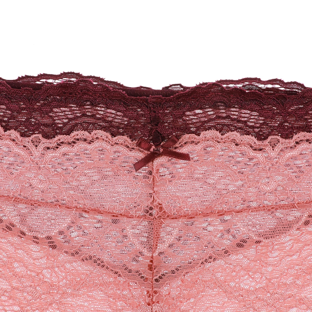 아이쉐도우에서 영감을 받은 제품. 그라데이션 쉐도우를 하듯이 핑크브라운 컬러와 와인컬러를 투톤으로으로 매치한 레이스 팬티.