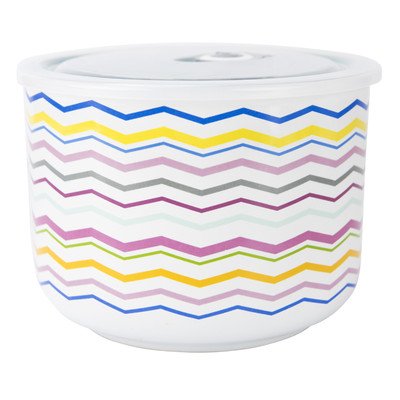 Boston Warehouse Food Storage Container with Lid Stoneware Bowl 64 Ounces Multicolored Waves