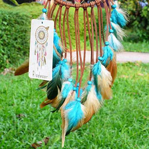 Ricdecor Indian Dream catcher Wind Chimes Feather Pendant wall hanging home decoration (Turquoise)