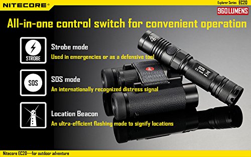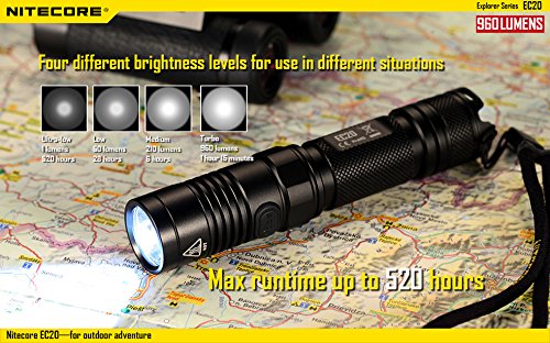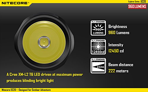 -. Title : Nitecore EC20 960 Lumen CREE XM-L2 T6 LED Flashlight with Nitecore NL183 rechargeable 18650 Battery, charger and 2 X EdisonBright CR123A Lithium Batteries Bundle