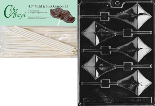 Cybrtrayd 45St25-K003 Kite Lolly Kids Chocolate Candy Mold with 25 Cybrtrayd 4.5-Inch Lollipop Sticks