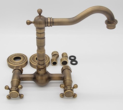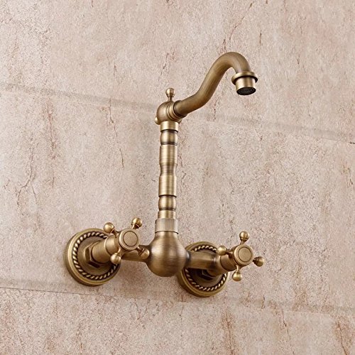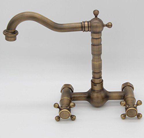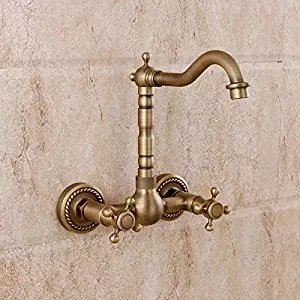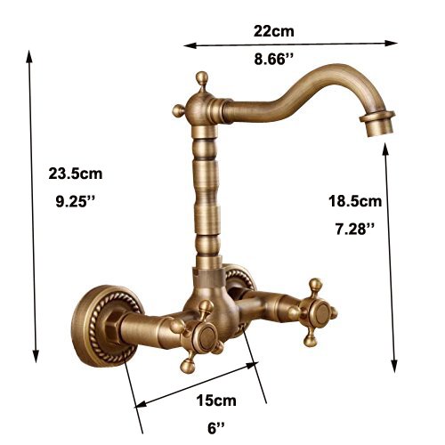 -. Title : Brass Wall Mount Dual Handle 9.25 Inches Basin Bathroom Sink Faucet Antique Brass Z201508100-7