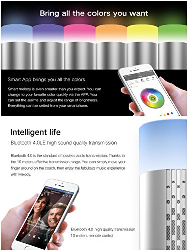 -. Feature : Using the vertical layout of the sound chambers to make the sound penetrate through walls. The music can reaches to every corner of your house / Using the array layout structure for the first time. Dual 5W high speaker units layout + Patened LF Diaphragm and wonderful speakers make the sound details more enjoyable. / 16 million colors scheme let your music shine. Download Smart App in your cellphone first. Then follow the instructions to select your favarite color quickly via the APP. / Support cellphone( iPhone, Huawei, Samsung), laptops, ipad, Desk computur and other devices with Bluetooth function easy to pair and play music / Using precise and professional optical structures and pair with German OSRAM high quality LED light conbination. you get brighter, more translucent, saturated and pure color.16 million colors make it more vibrant and natural. Hi-Fi sound quality Hi-Fi opeational circruit, restore high quality sound. Osram audio engineer added Hi-Fi level audio operational circuit, to guarantee the speaker has better sound quality. It needs more output power to sport dual 5W speakers.