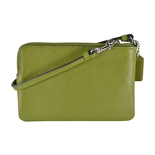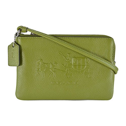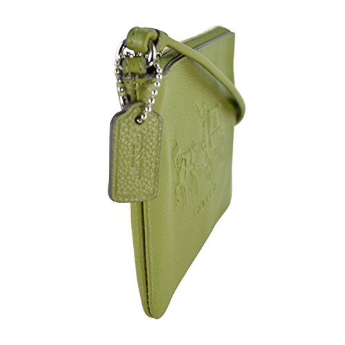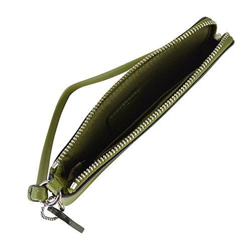 -. Feature : Signature embossed leather / 6 (L) x 3 3/4" (H) / Wristlet strap / Fabric lining / Interior features 2 card slots