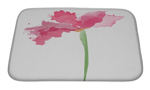 Gear New No Slip Microfiber Memory Foam Beautiful Pink Flower Watercolor Painting Bath Rug Mat, 24" X 17"