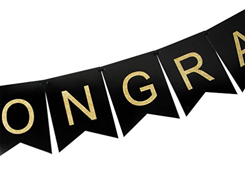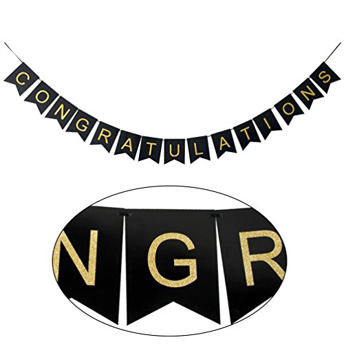 - Congratulations on your graduation, wedding, new baby, retirement, Birthday, or any theme party! What better way to celebrate than with our hand strung, premium quality black banner. This congratulations banner is the perfect decoration to add a little classic décor to your event.