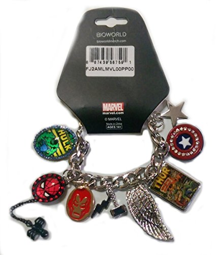 -. Feature : Heavy Duty Marvel Comics Multi-Character Charm Bracelet / Features Captain America Shield, Spider-Man, Thor, Iron Man and Hulk charms (10 in total) / Measures approx. 19cm fully extended / Closes with T-Bar and comes presented on Marvel branded card / Officially licensed.