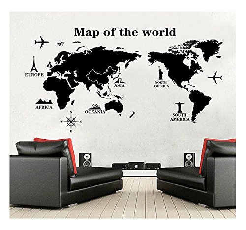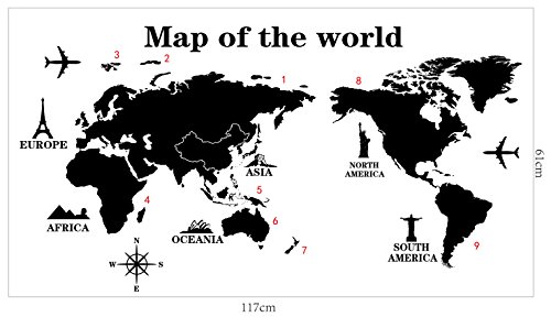 World Map Wall Decal - Vinyl Wall Art Removable Sticker - Large Peel and Stick Art Mural, Home/Office Decor by Dooboe