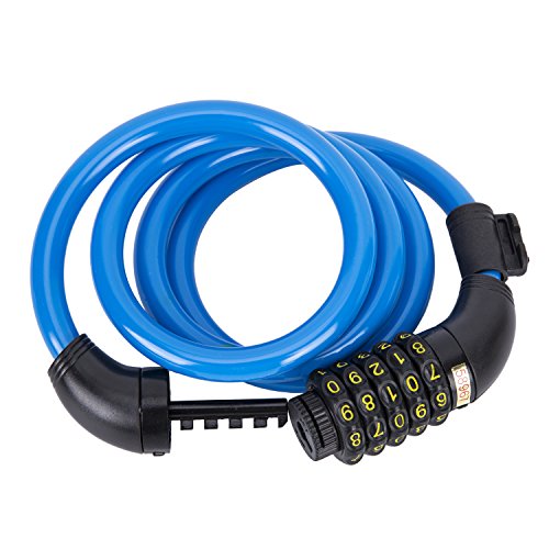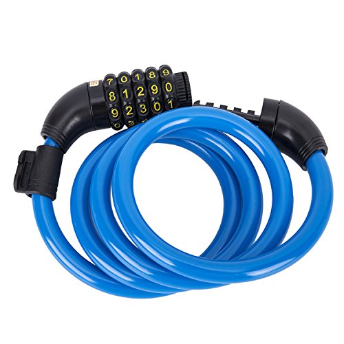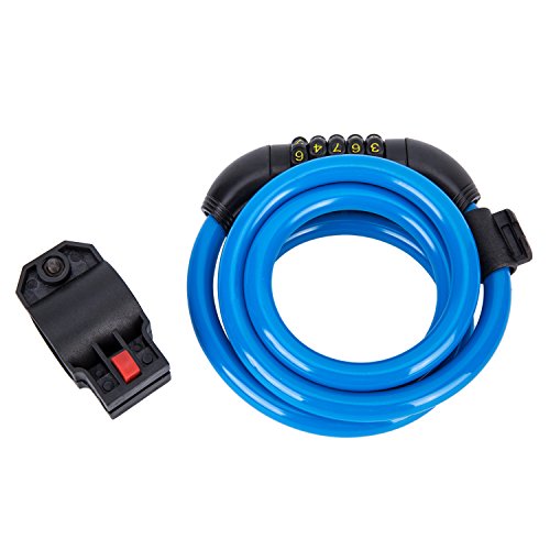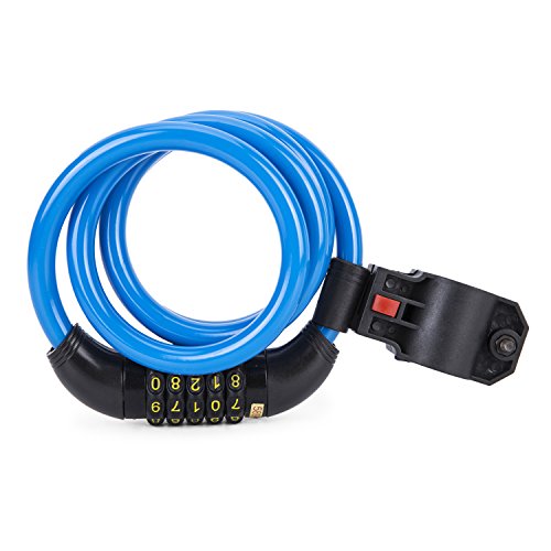 SUNVP Bike Bicycle Cable Lock Self Coiling Security 5 Digit Code Resettable Combination with Mounting Bracket, 4 Feet x 1/2 Inch