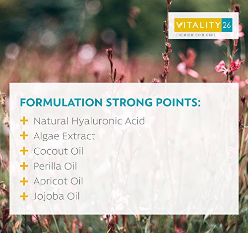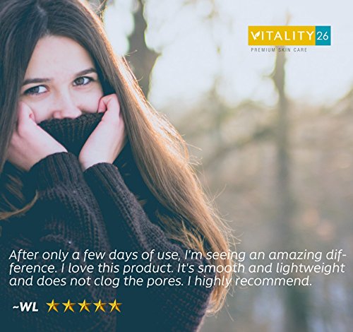 REDUCES VISIBLE SIGNS OF AGING AT A CELLULAR LEVEL: Vitality26 has loaded the Anti Aging Lifting Serum with proven natural age fighting ingredients like Hyaluronic Acid, Algae Extract, Monoi, Jojoba, Apricot Kernel & Perilla Oils. This all-star lineup contains powerful antioxidants and Omega 3 fatty acids that revitalize and brighten skin while softening and smoothing wrinkles, fine lines and crow's feet.