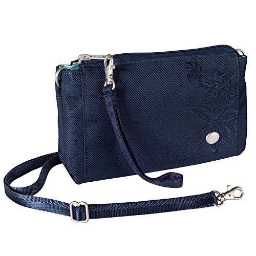 -. Feature : Secure zip closure / Detachable and adjustable shoulder strap with a maximum drop length of 26 inches / Detachable wrist strap / 1 exterior zip pocket / 3 interior compartments with 6 card slots