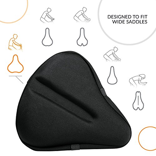WIDE GEL SEAT COVER - 11" Long x 10" Wide -You can use this bike seat gel cover on cruiser bikes, road bike, as a comfy exercise bike seat cushion or as the perfect fit for the stationary bike saddle( ex fits Peloton, Schwinn Airdyne ). We recommend you double check the size of your saddle before ordering a cycle seat cushion to make sure it fits.