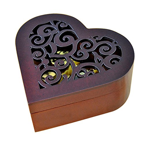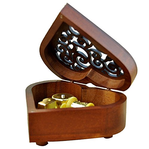 Antique Engraved Wooden Wind-Up Musical Box,Swan Lake Musical Box,with Gold-plating Movement in,Heart-shaped