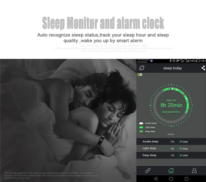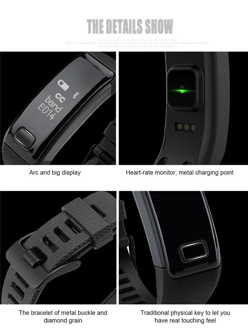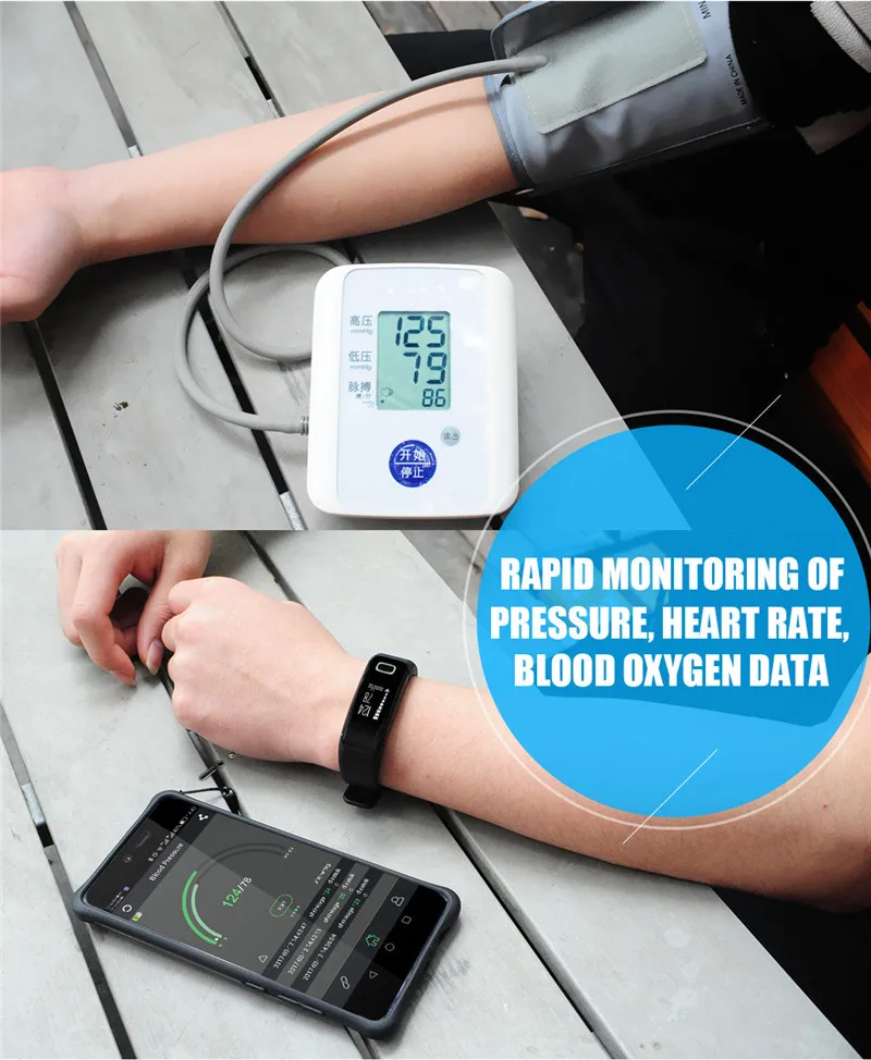 - Function:Calendar,Passometer,Social Media Notifications,Week,Message Reminder,Sleep Tracker,Heart Rate Tracker,Call Reminder,Fitness Tracker,Blood Oxygen,Push Message