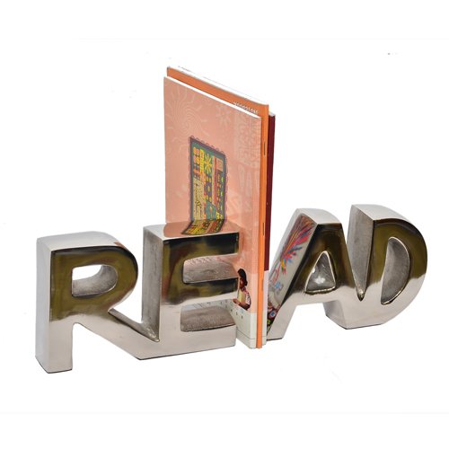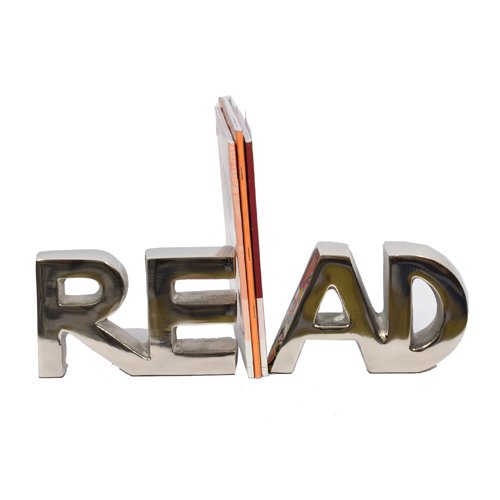 Made of Aluminium.These look fantastic in a study or family room, as decorative as they are functional.This gift is especially appropriate for a 10th wedding anniversary, as aluminium is the traditional gift.Showcase your favorite books with this sleek and witty set of bookends. Made of sturdy polished cast aluminum with a protective anti-scratch base, these "READ" bookends are perfect for the avid reader.
