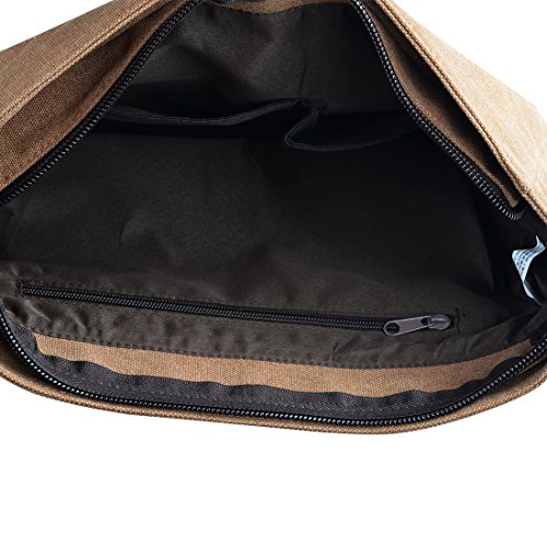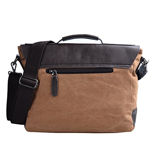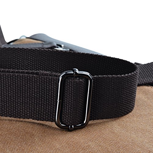 -. Feature : * High Quality Canvas Cotton, decorated with PU leather / * Production Weight: 2.2Lb, Approx Dimensions: 14 x 4.7 x 11.5 Inch in LxWxH. / * Compartments: 1* mainly pocket can suitable for 10"laptop and tablet, 2* front zipper pockets, 1* rear pocket, 1* interior credential pocket and 1* phone pocket, 1* interior zipper pocket. / * Freely adjustable shoulder strap buckle, you can adjust it according to your height and comfort requirements. / * Please allow little color difference due to different camera or light environment.