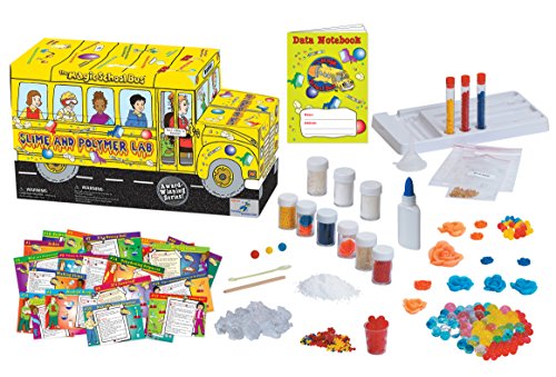 Ms. Frizzle and her students take Young Scientists on a wild ride with The Magic School Bus as they explore slime and polymers. Young Scientists take polymers out of milk, make slime, create goop, produce a snow eruption, melt snow, grow super-absorbent flowers, germinate seeds in polymers, perform a polymer trick, dehydrate polymers, and much, much more! This gooey bus-shaped kit comes packed with science components, 20 colorful experiment cards, a data notebook to record observations, and 9 containers of polymers including rainbow beads, snow, and gel crystals. Seatbelts, everyone! Get ready to experiment with Slime and Polymer Lab!Feature