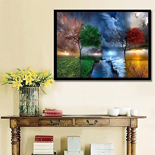Fipart DIY Diamond Painting Cross Stitch Craft Kit Wall Stickers for Living Room Decoration(12X18inch/30X45CM)Four seasons tree