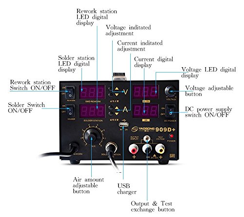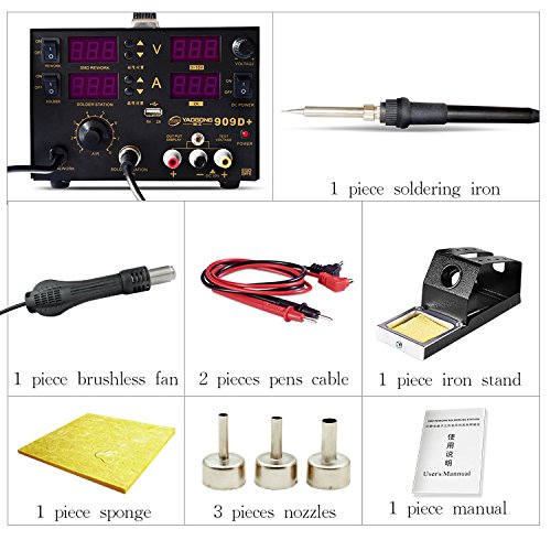 YAOGONG New Long Life 909D+ 3 In 1With DC Power Supply Hot Air SMD Soldering Rework Station