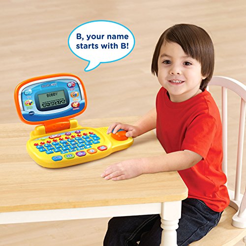 Personalize your child's laptop with their name, age, favorite food and more with the Tote & Go Laptop® by VTech®. This learning laptop offers 20 interactive activities with progressive learning levels that teach a variety of subjects. Includes five letter and word activities that teach children how to spell their name and explore letters and words. Five basic math games teach children how to count their age and explore shapes and numbers. Explore three animal and food activities that help your child identify animal sounds and footprints as well as categorize food into fruits and vegetables. Strengthen problem-solving skills with three logic activities through puzzle and logic games. Plus, three music activities explore instruments sounds and play 30 popular melodies in rock, country or jazz styles. The laptop also includes a mouse that introduces basic mouse skills and improves hand/eye coordination. Learn and grow on the go!Feature