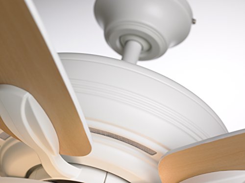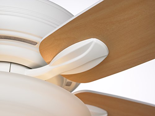 52-inch Ashland Low Profile Hugger ceiling fan with Satin White housing and Satin White/Maple dual finish blades