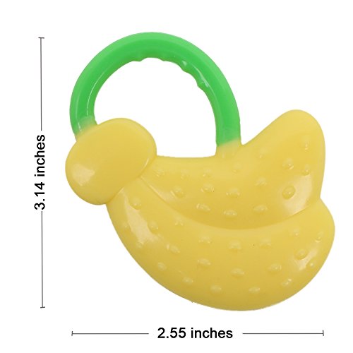 The toy with funny forms as watermelon, grape, banana, bell or baby bottle which were created to fit perfectly in the baby’s mouth for their comfortable use and not causing any choking hazard.
