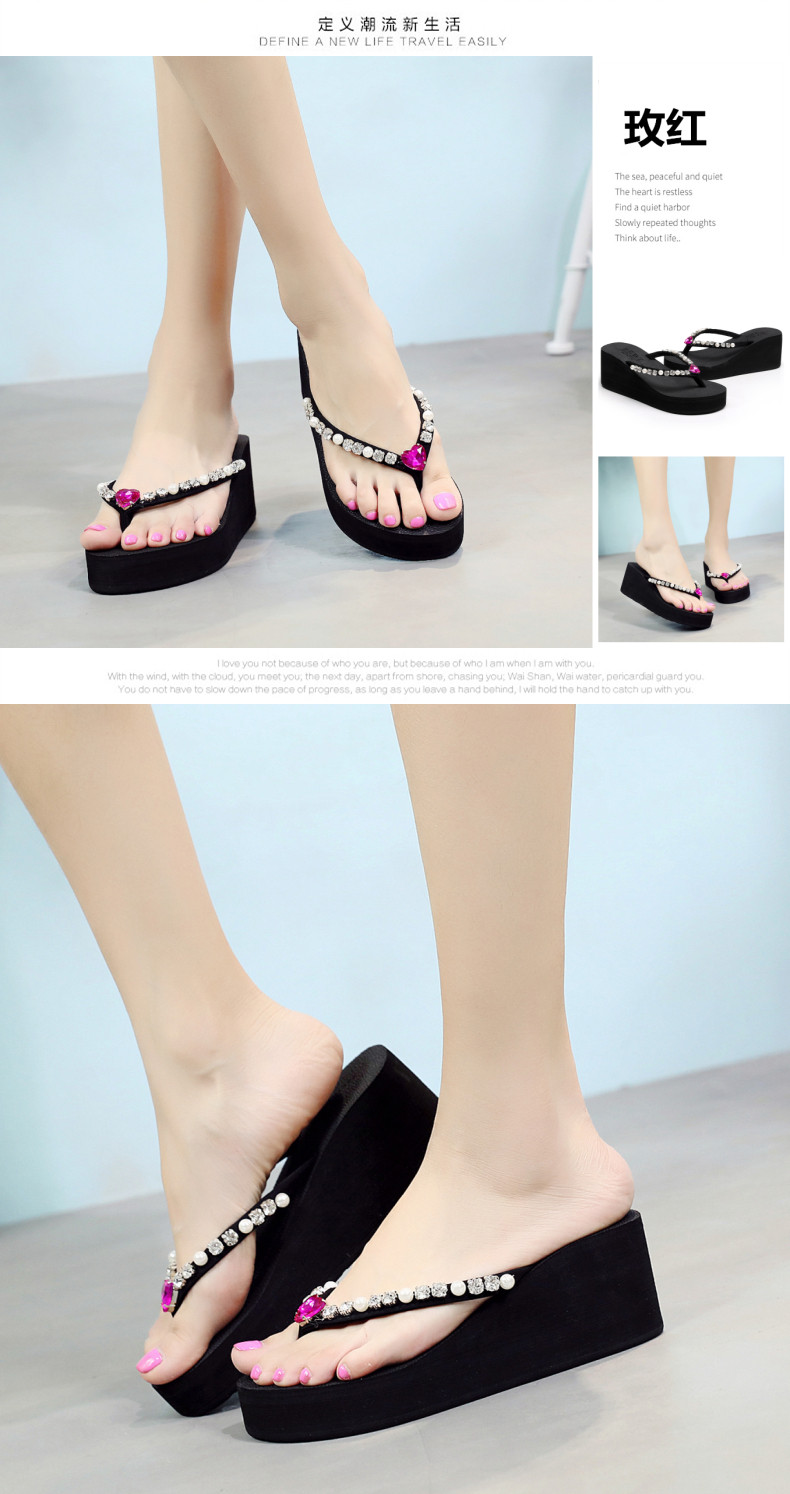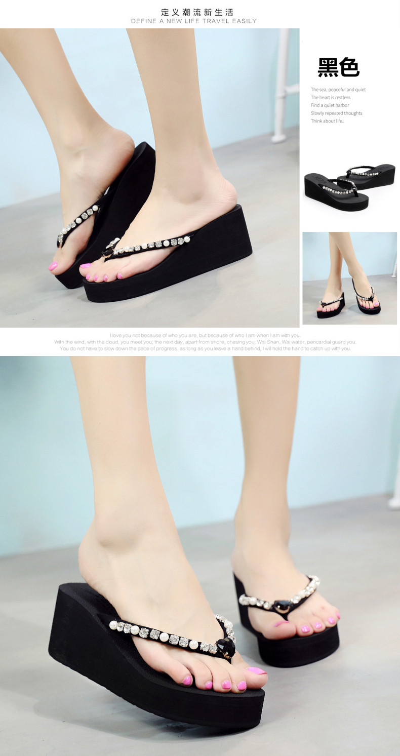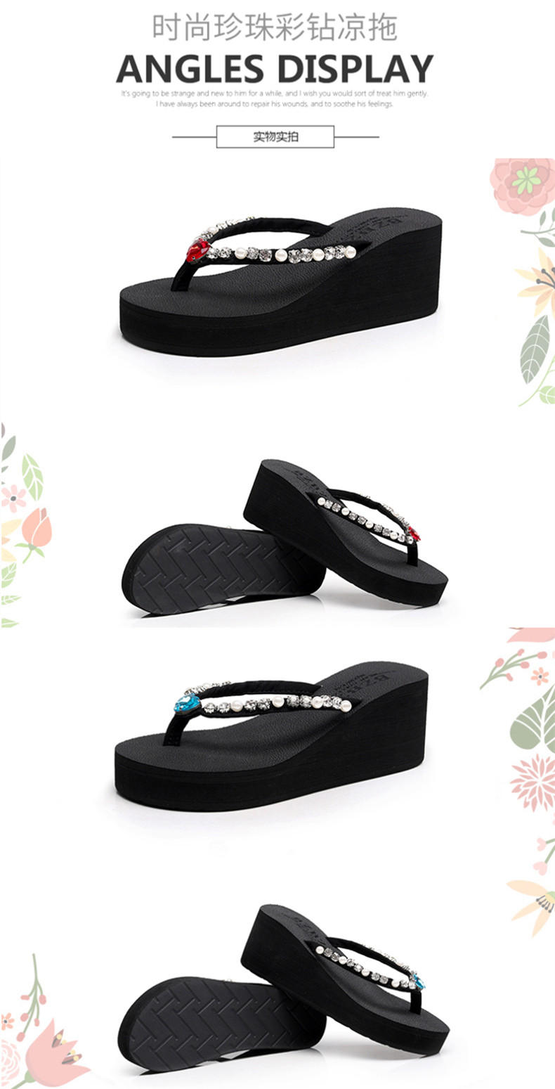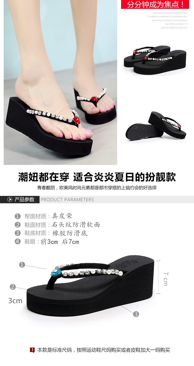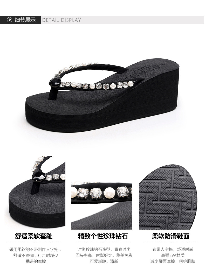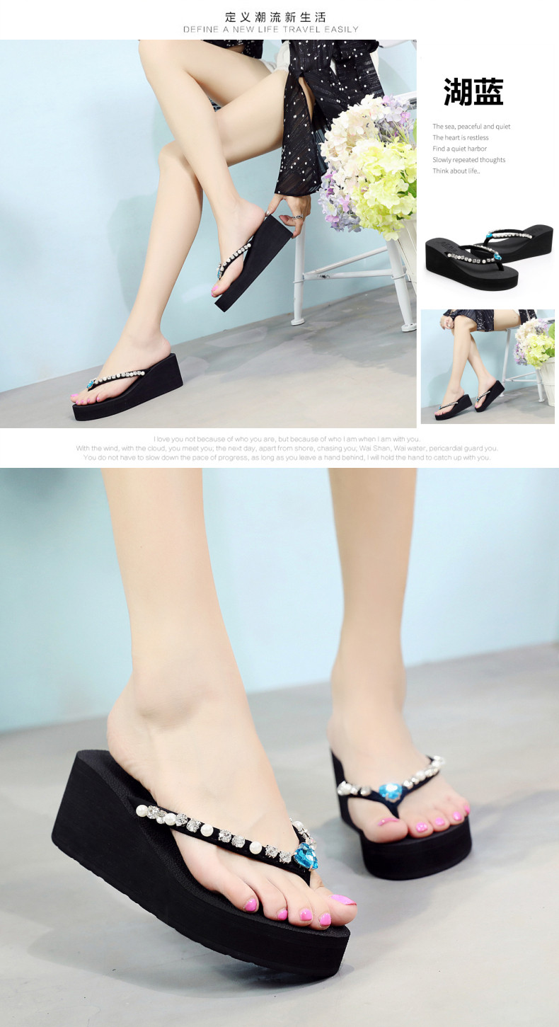 新款高跟水钻人字拖女夏外穿时尚防滑坡跟夹脚凉拖厚底沙滩鞋