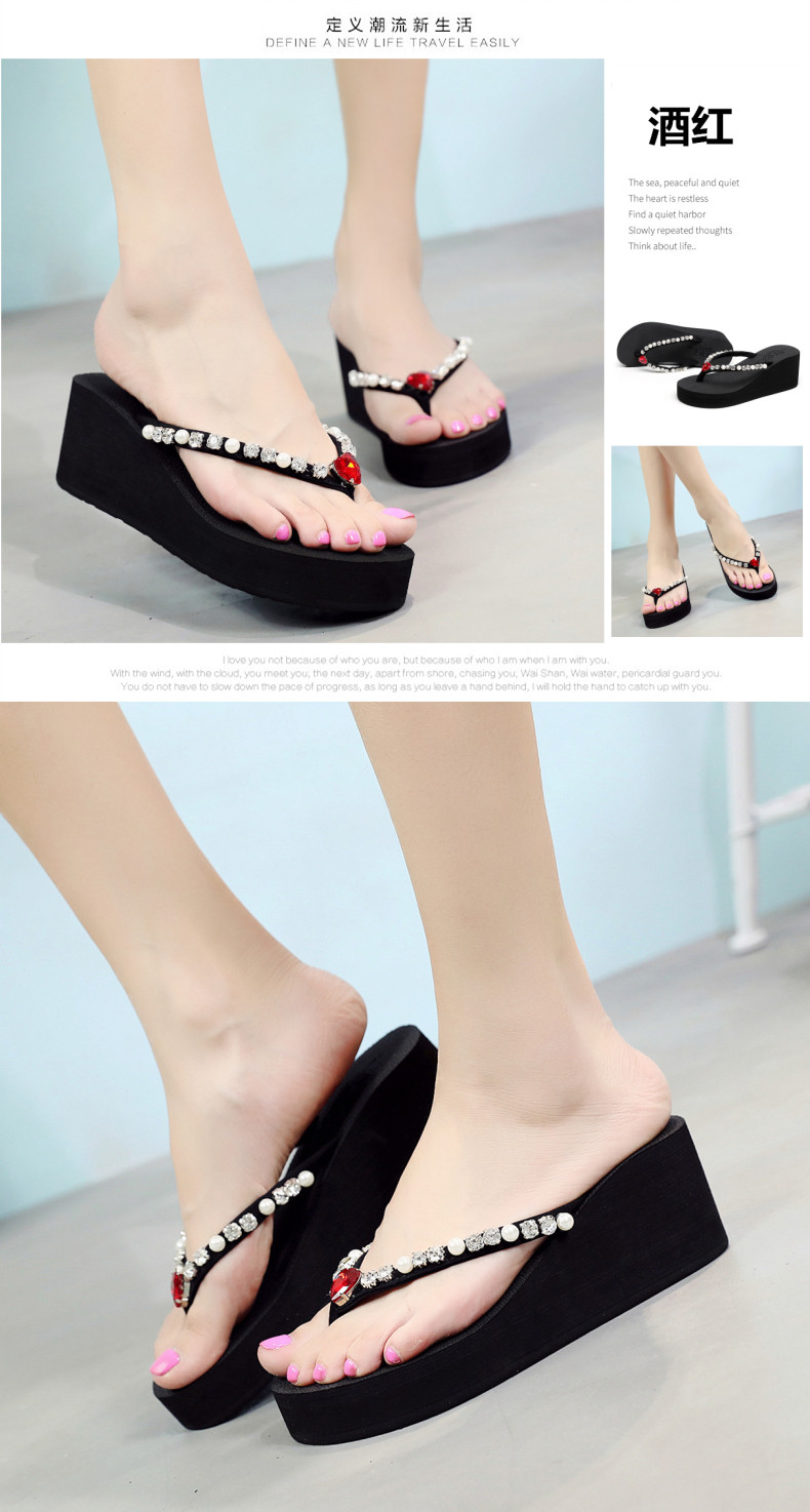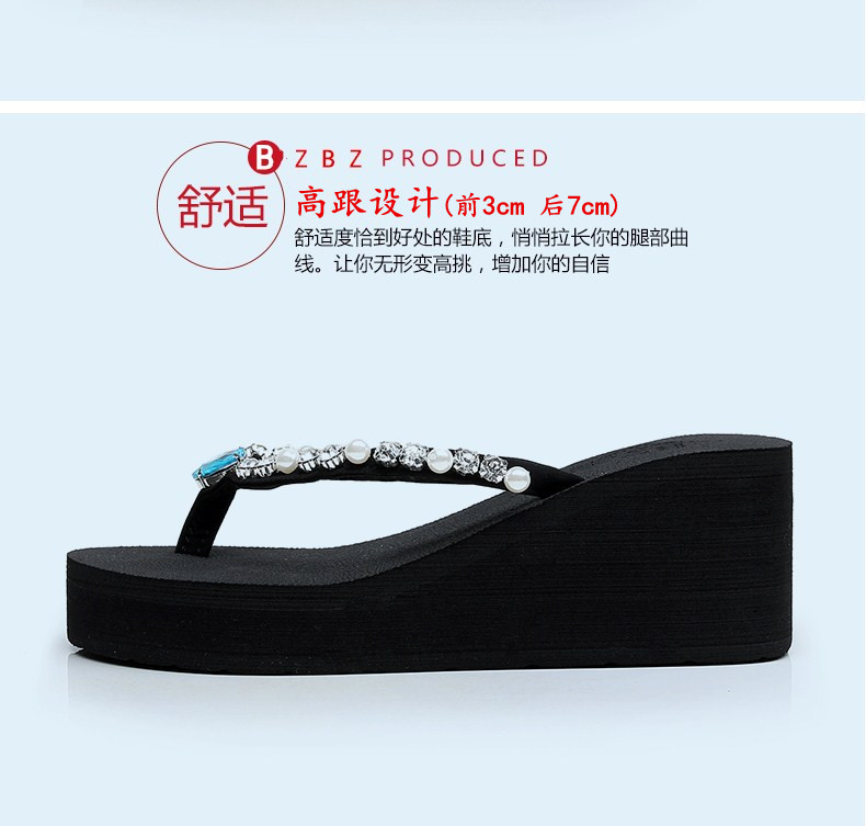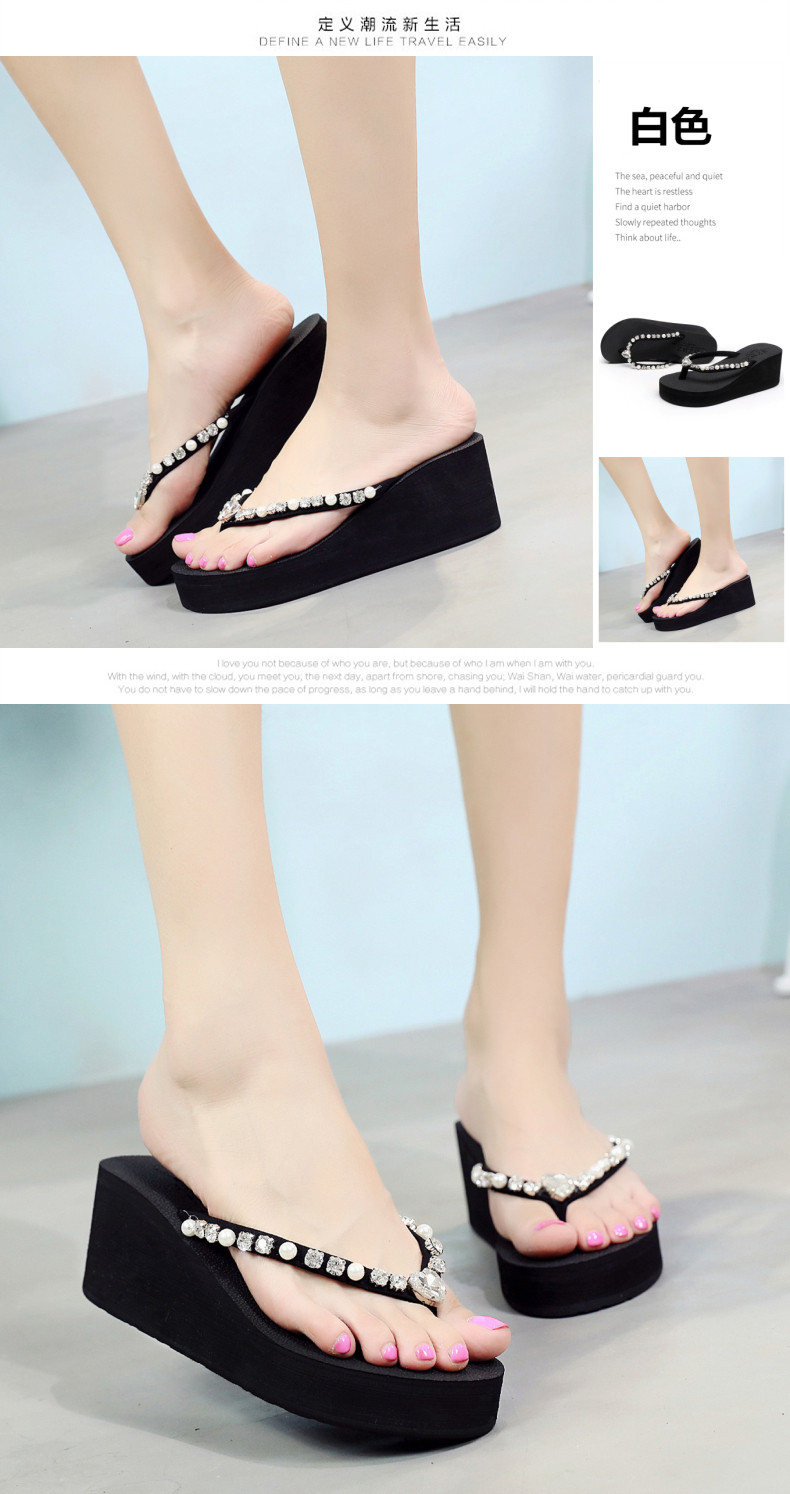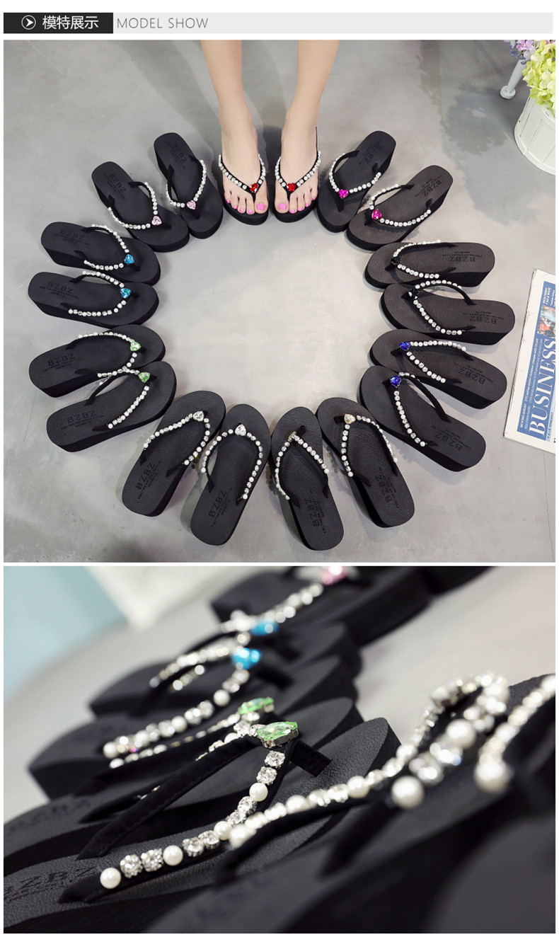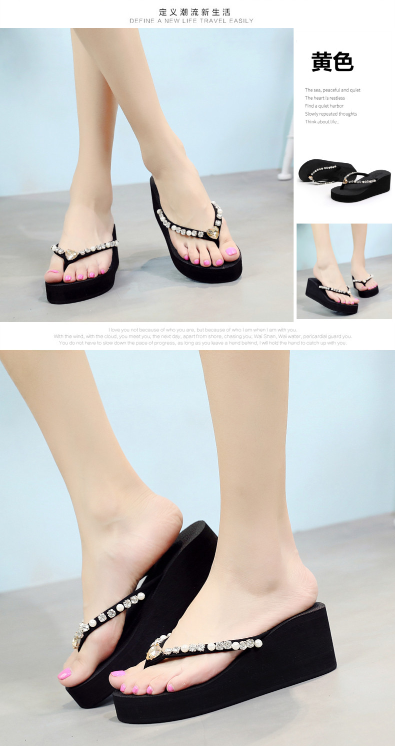 新款高跟水钻人字拖女夏外穿时尚防滑坡跟夹脚凉拖厚底沙滩鞋