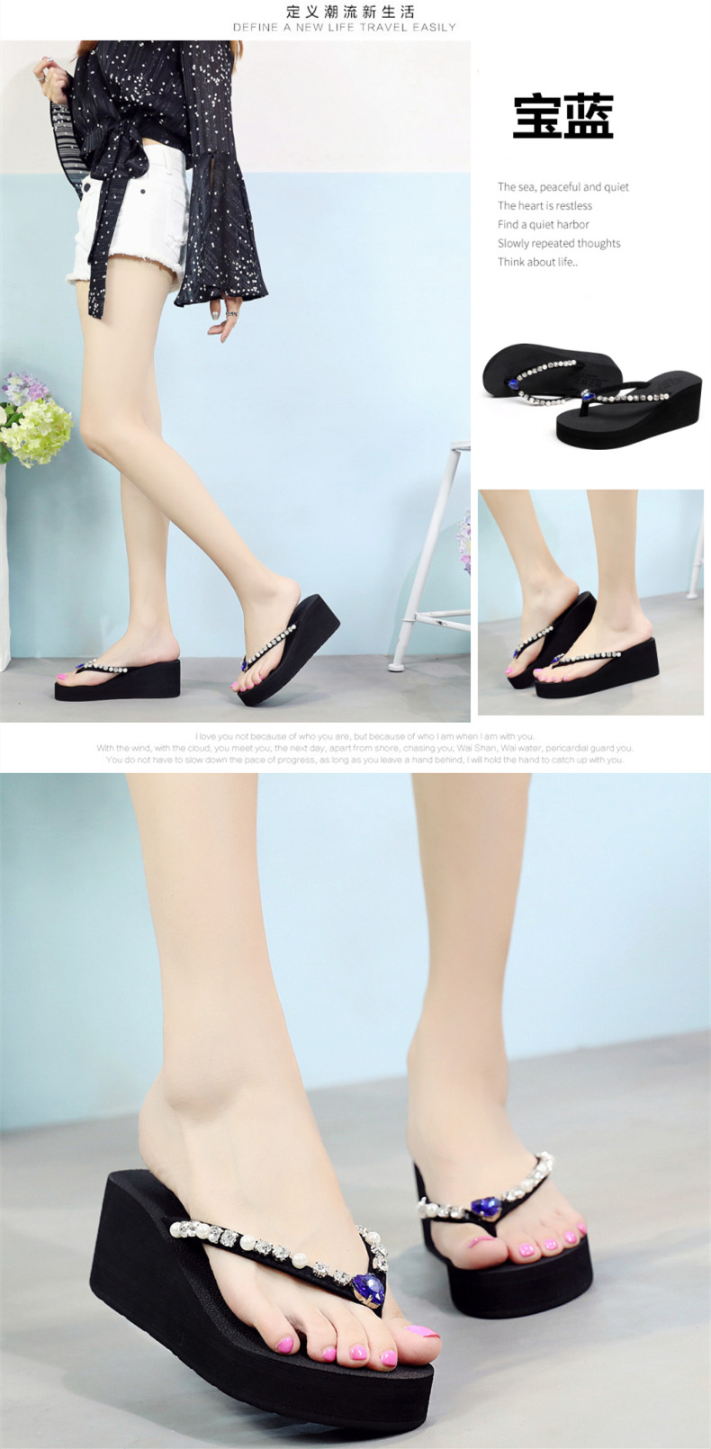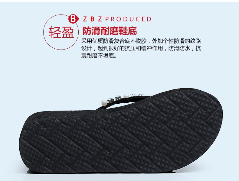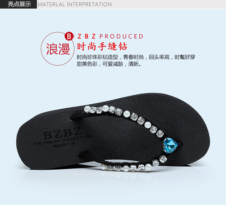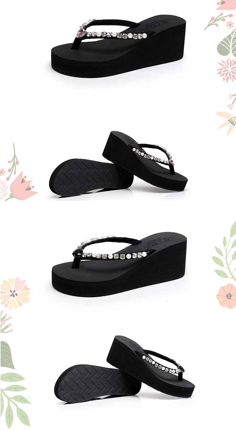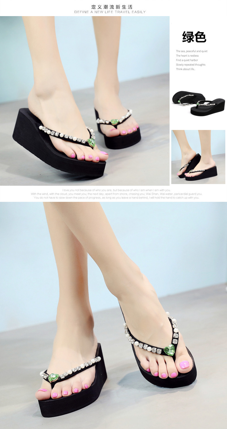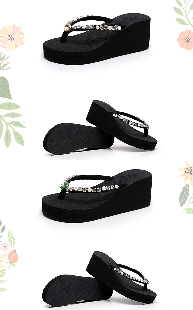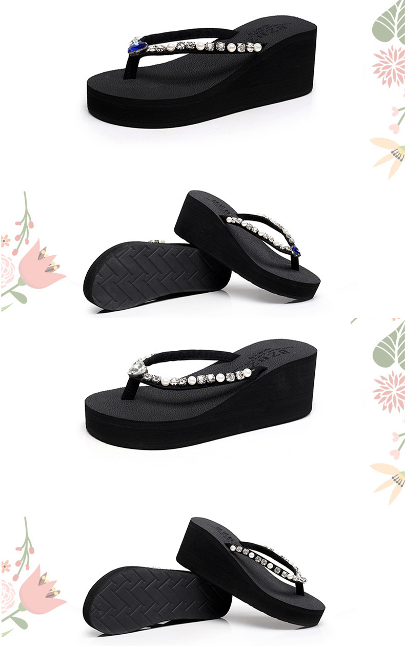 新款高跟水钻人字拖女夏外穿时尚防滑坡跟夹脚凉拖厚底沙滩鞋