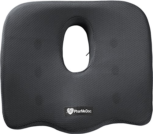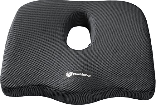 PharMeDoc Coccyx Pillow - Tailbone Pain Cushion - Seat Cushion for Back Pain - Memory Foam Pillow for Pain Relief - 2016 Design - Car Seat Cushion / Wedge - Office, Travel, Wheelchair & more B00O843HAE