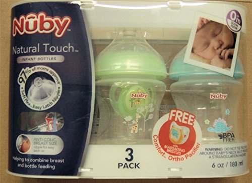 -. Title : Nuby 3-Pack Natural Touch 6 oz P.R.Inted Baby Bottles & Comfort Pacifier BPA-Free 0+ Months