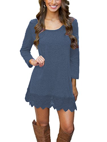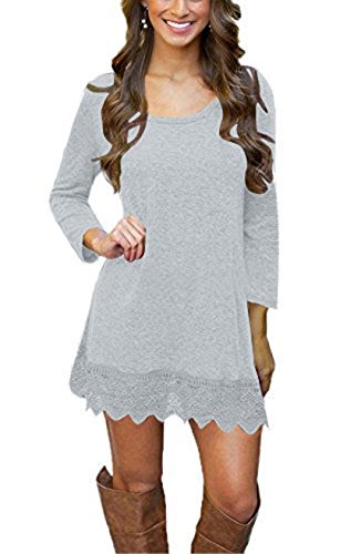 Colors may appear slightly different via website due to computer picture resolution and monitor settings.This women casual tunic dress features lace hem and cotton fabric which has a good stretchability, sexy and comfortable, simple but elegant.