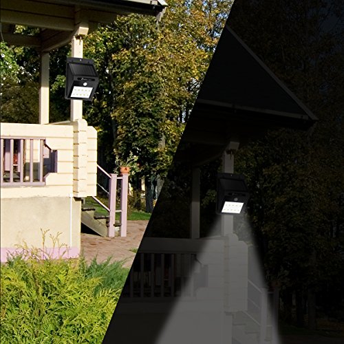 - Intelligent Detection- PIR Motion sensor and night sensor, Auto on at night / auto off at sunrise; 10 feet/3 meters Sensor Distance. 120°C sensing range. then turn to Dim Mode without motion in 15s and keep it until detecting next motion, auto off when surrounding is bright in day, very smart auto control.