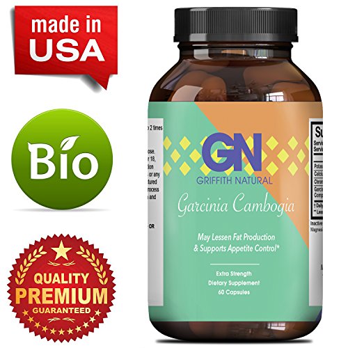 -. Binding : Health and Beauty -. Brand : Griffith Naturals -. EAN : 0806808279774 -. Feature : SPECIALLY FORMULATED - Our Garcia Cambogia helps you lose weight fast and gives your body the energy it needs to work off and burn unhealthy, unwanted and unnecessary fat! / REDUCE CRAVINGS - Makes you feel full faster and controls overeating. This powerful appetite suppressant may stop those sugar and carbohydrate cravings that increase unhealthy body fat / 95% HCA - Hydroxycitric Acid naturally increases your body's energy which can be used to boost and improve your overall weight loss, fat burn, and exercise performance! / Contains Natural Compounds - Amino Acids help the body build muscle and break down fat so you burn more calories, also contains Antioxidants which boosts your immune system and promotes healthy life. / 100% Money Back Guarantee - With the help of this premium bottle of Garcinia Cambogia you can get fast acting results! Each capsule is produced in a facility that exceeds GPM standards -. IsAdultProduct : 0 -. Label : Griffith Naturals -. Manufacturer : Griffith Naturals -. MPN : LE -. PackageQuantity : 1 -. PartNumber : LE -. ProductGroup : Health and Beauty -. ProductTypeName : HEALTH_PERSONAL_CARE -. Publisher : Griffith Naturals -. Studio : Griffith Naturals -. Title : Garcinia Cambogia Extract - Weight loss - Lose Belly Fat - 95% HCA Extract - Diet Pills - Vitamins - Antioxidants & Detox - Appetite Suppressant + Cleanse - For Men & For Women - By Griffith Naturals -. UPC : 806808279774
