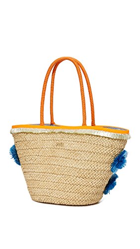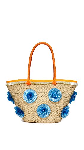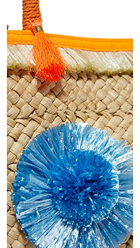 Product DescriptionPom pom straw tote. Crafted in corn husk straw with hand woven pom pom and fringe details. Top magnetic closure. Interior: one zip pocket and two slide pockets. Fully lined.0