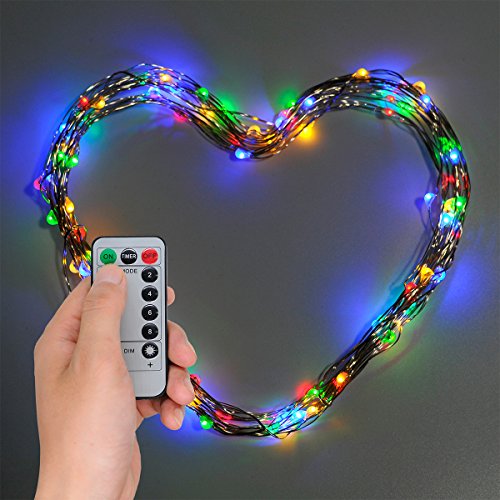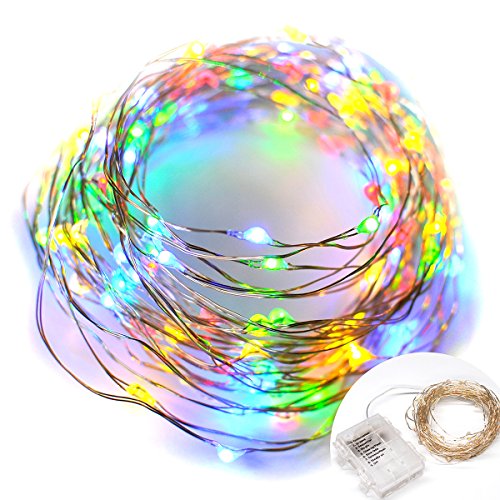 - √COLORFUL BATTERY POWERED FAIRY LIGHTS: Popular sliver wire starry string lights, 33 feet in length with total 100 led, Powered by 3 x aa batteries (not included), colorful and fairy tale visual impact.