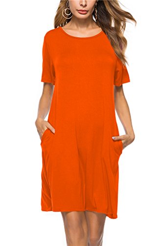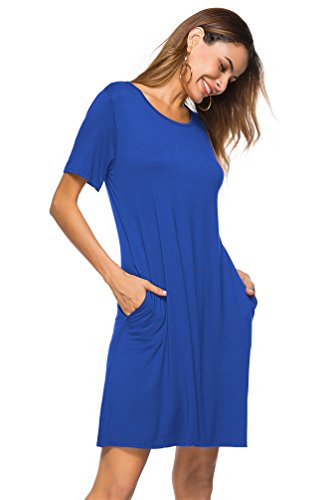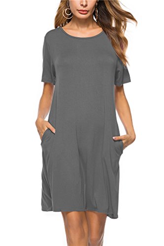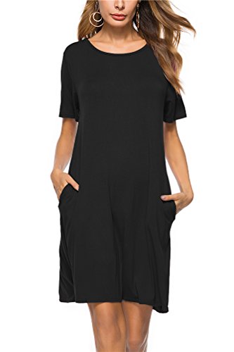 VOGRACE Women's Short Sleeve Loose T Shirt Dress Swing Dress With PocketsFabric: 65% Cotton/35% Polyester