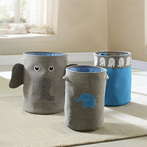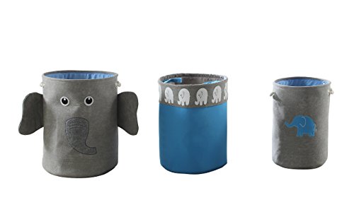 3 Piece Elephant Storage Hamper - Gray/Blue