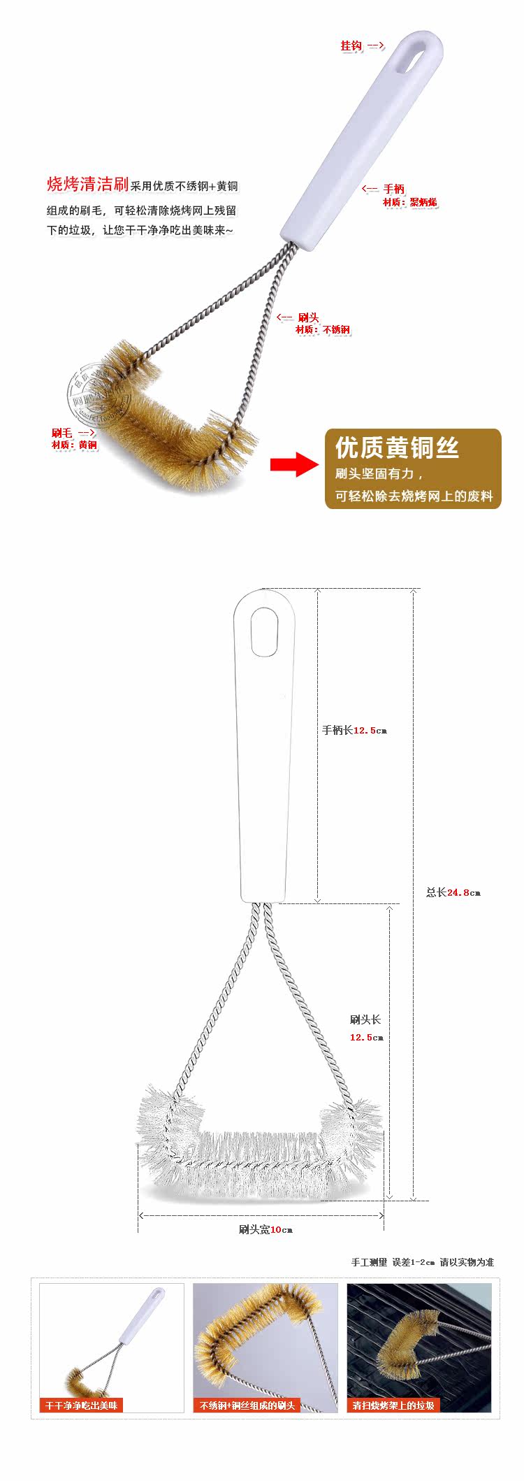Japanese quality, mesh grill cleaning brush, using thin strips of copper wire made of copper dense arrangement, the length of line 360 can effectively clean meshes stains, cleaning faster and cleaner. Shank with a hole that can be used directly to hang, easy storage.