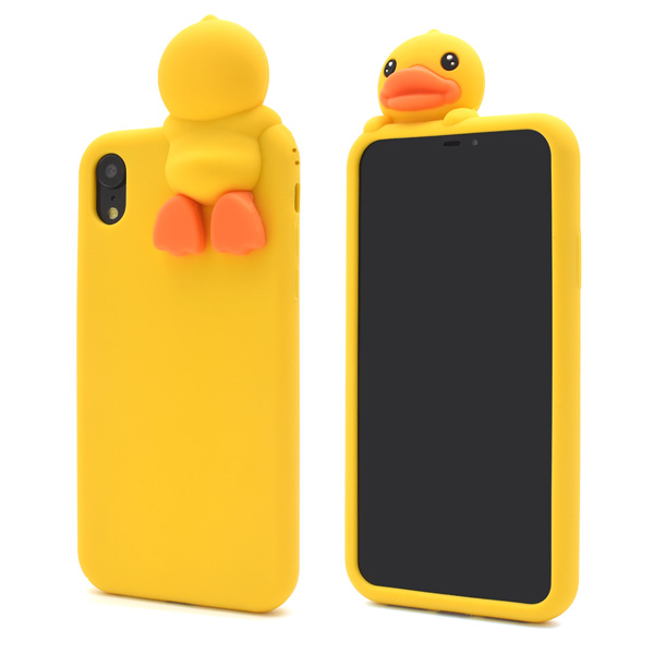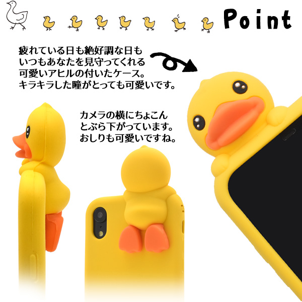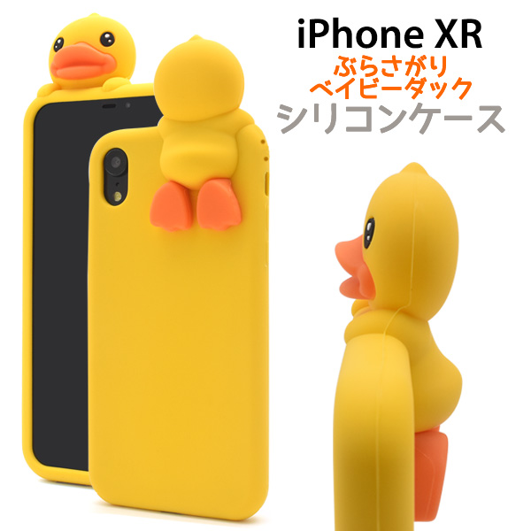 | つぶらな瞳が可愛い!iPhone XR用カバーぶらさがりベイビーダックシリコンケース |