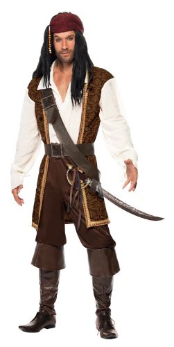 -. Binding : Apparel -. Brand : Smiffy's -. Color : Brown -. Department : mens -. Feature : Includes top, short pants, baldric, belt and headscarf / Sword and boots not included / Exclusive Smiffys branded product -. Genre : Classic -. Label : RH Smith & Sons LTD -. Manufacturer : RH Smith & Sons LTD -. Model : 26224 -. PackageQuantity : 1 -. ProductGroup : Apparel -. ProductTypeName : ADULT_COSTUME -. Publisher : RH Smith & Sons LTD -. Studio : RH Smith & Sons LTD -. Title : Smiffy's High Seas Pirate Costume
