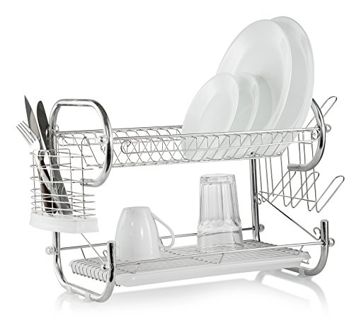 -. Feature : Compact 2-tier design with small footprint / Conveniently drains and stores cutlery and dishes / Made of rust-resistant stainless steel / Minimal assembly required / Retail Gift Packaging