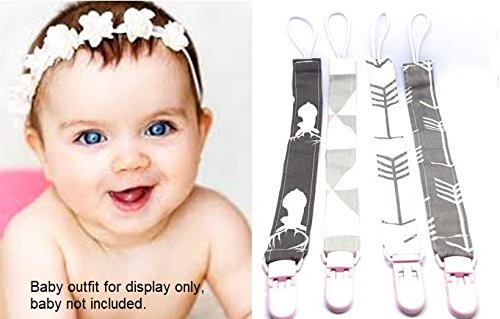 -. Binding : Baby Product -. Brand : Slipfree -. Color : Pink -. EAN : 0023619519640 -. Feature : Don't lose anymore pacifiers, rattlers or teething toys again / Pacifier holders come in 4 different patterns to fit your child's outfit. / Pacifier Ribbon is made of high quality cotton / No more picking up dirty pacifiers again / Can be used with rattlers and teething toys as well -. Label : Slipfree -. Manufacturer : Slipfree -. MPN : 43235-41836 -. PartNumber : 43235-41836 -. ProductGroup : Baby Product -. ProductTypeName : BABY_PRODUCT -. Publisher : Slipfree -. Studio : Slipfree -. Title : Baby Pacifier Holders Assorted Patterns Pink Clips( Pack of 4's) -. UPC : 023619519640